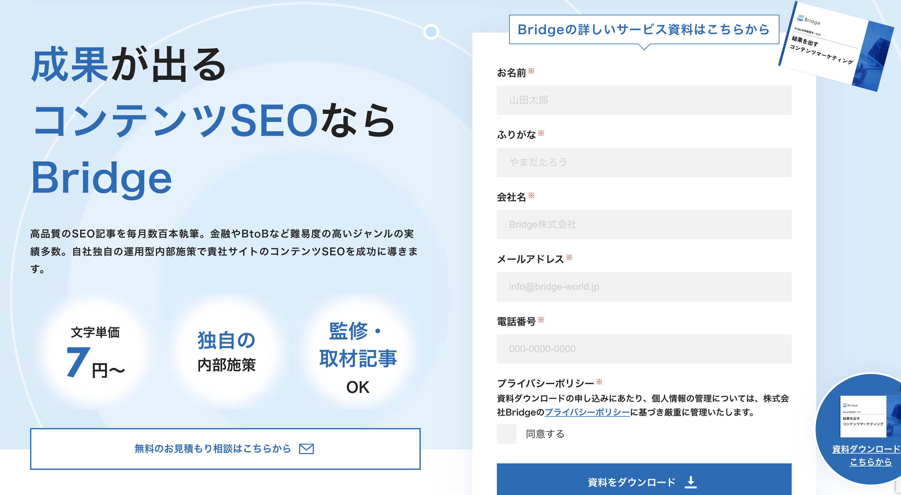 株式会社Bridgeは、SEOを軸としたデジタルマーケティング支援を専門とする企業です。